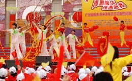 2月11日,在佛山市禪城區南莊青年文化廣場,共青團廣東省委和省勞動廳等部門為3000多名春節不回家的外來務工人員送去文藝節目,感謝他們為建設廣東做出的貢獻。圖為來自廣州的文藝團體在表演。