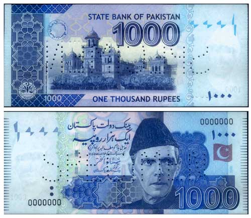 這張2月24日拍攝的照片顯示的是巴基斯坦發(fā)行的新版1000盧比紙幣的正面和反面圖案。巴基斯坦中央銀行當(dāng)天正式發(fā)行了1000盧比的新版紙幣。新紙幣采用了先進的防偽技術(shù),大大減小了被偽造的風(fēng)險。