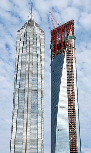 9月10日拍攝的位于金茂大廈旁的上海環球金融中心(右)。目前,上海環球金融中心已建至最高層101層,將于9月14日正式封頂。新華社發