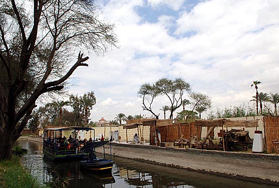 法老村位于開羅市郊尼羅河畔的雅各布島上,占地約200畝,是埃及首任駐華大使哈桑·拉吉卜集資修建的。法老村內的主要建筑完全按古埃及樣式建造。400多名“村民”身著法老時代的服飾,使用當時的生產工具,按古埃及人的方式從事農耕、漁獵及手工業制作,展現了幾千年前的古埃及社會生活情景。該景點于1977年正式對外開放,吸引了大批海內外游客前來旅游觀光。