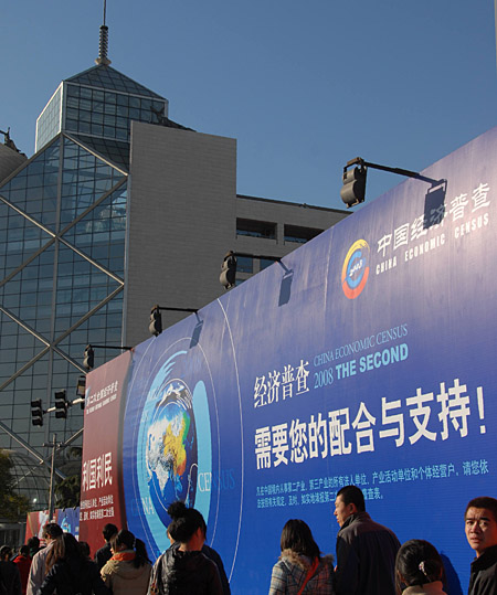 豎立在北京西單街頭有關(guān)第二次全國經(jīng)濟(jì)普查的大型宣傳牌引人注目(11月15日拍攝)。 第二次全國經(jīng)濟(jì)普查的對象是在中國境內(nèi)從事第二產(chǎn)業(yè)和第三產(chǎn)業(yè)的所有法人單位、產(chǎn)業(yè)活動單位和個體經(jīng)營戶。普查的標(biāo)準(zhǔn)時點(diǎn)是2008年12月31日,時期資料為2008年度。 | |