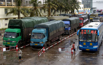 9月14日,車倆滯留在海口港等待復航。當日,2009年第15號熱帶風暴“巨爵”逐漸向廣東沿海靠近,受其影響,海南四周海面刮起大風,海口海事局16時30分下達指令,瓊州海峽全線停航。