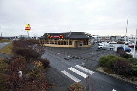 受金融危機影響,美國快餐業巨頭麥當勞在冰島的三家分店“入不敷出”,被迫關閉。10月31日在冰島首都雷克雅未克拍攝的麥當勞快餐店。當日是麥當勞冰島分店營業的最后一天。新華社/法新