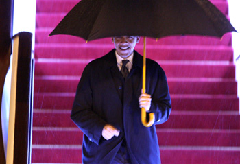 據(jù)新華社上海11月15日電 應(yīng)國家主席胡錦濤邀請,美國總統(tǒng)奧巴馬15日晚乘專機(jī)抵達(dá)上海,開始對中國進(jìn)行為期4天的國事訪問。