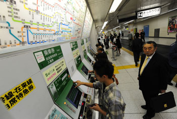 東京車站,乘客在自助購買車票。四通八達的軌道交通是日本人平時出行的首選。記者 季春鵬/攝 |