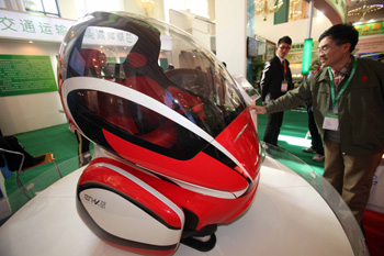 11月24日,參觀者在綠博會上觀看電動聯網概念車。新華社發(陳曉根 攝) |