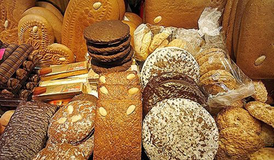 德國最著名的圣誕食品是姜餅Lebkuchen。這是是一種介乎于蛋糕與餅干之間的小點。傳統的姜餅,以蜂蜜、胡椒粒為材料,又甜又辣,口感刺激。現在的姜餅都經過改良,外面灑上一層糖霜,不但口感豐富,外型也相當討好。