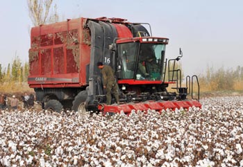 如今,阿拉爾墾區(qū)有近1/3的棉田都靠機械采摘,自從新疆進行了大面積棉花機械化采摘作業(yè)的有益嘗試,實施機械化采摘棉花,不僅達到了團場增效、職工增收的目的,而且從根本上改變了以往拾花季節(jié)市區(qū)機關(guān)停止辦公、工廠停工、商店停業(yè)、中小學停課,全部下團場采摘棉花的情況。更為重要的是,利用這種機械不僅減輕采摘棉花的繁重勞動,還降低了人工采棉成本。據(jù)張樂測算,使用機械采摘棉花,每公斤的費用不到0.6元,不到人工采摘的1/3。