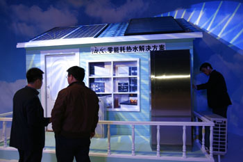 綠色低碳成為消費電子業(yè)的主旋律。圖為海爾推出的零能耗熱水解決方案。資料照片 |