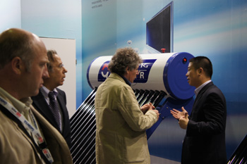 華揚技術(shù)人員向外商介紹太陽能產(chǎn)品。記者 王星橋