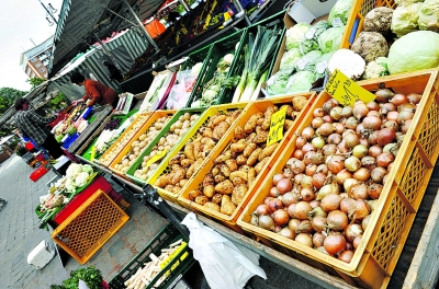 5月28日,在德國(guó)北部城市羅斯托克的一個(gè)蔬菜銷售攤位,消費(fèi)者選購(gòu)蔬菜。