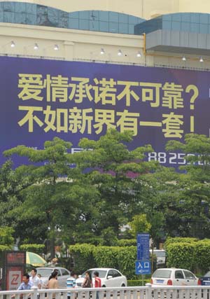 這是開發商在福州寶龍城市廣場商廈頂樓打出的售樓廣告。