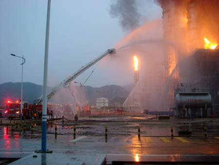 11日凌晨4時10分,廣東省惠州大亞灣石化區中海石油煉化有限責任公司惠州煉油分公司運行三部400單元的重整生成油塔底泵機械密封泄漏著火,有關方面隨即展開撲救,并在9時左右宣布明火已被撲滅。但10時許和13時55分,火災區先后傳來兩次爆炸聲并冒出滾滾濃煙。事故未造成人員傷亡。