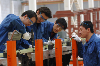 在西安飛機工業(集團)有限責任公司的生產車間,工人在加工空客飛機的機翼部件。資料照片(新華社記者 王建華