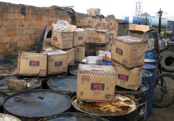 為牟取暴利,鄭州宏大糧油商行經(jīng)營戶袁某把這些來路不正、自己不敢食用的油,批發(fā)給鄭州郊縣的一些糧油店,或者經(jīng)灌裝零售給周邊的賓館、飯店、工地食堂、夜排檔、油條攤。警方在搜查時還發(fā)現(xiàn),部分地溝油還被貼上某著名食用油品牌商標(biāo)。