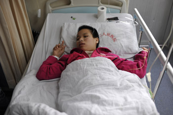 躺在病床上的檀秋燕。記者 扶慶