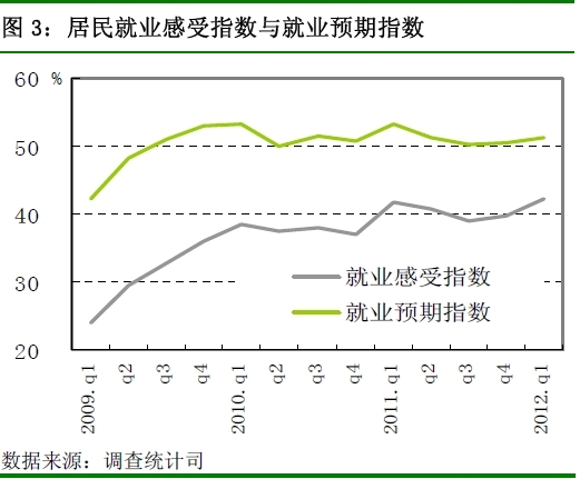 居民當期收入感受指數51.9%,較上季回升1個百分點,表明居民收入情況有所改善。居民未來收入信心指數54.9%,較上季回落0.4個百分點,表明居民對未來增收信心略有下降。