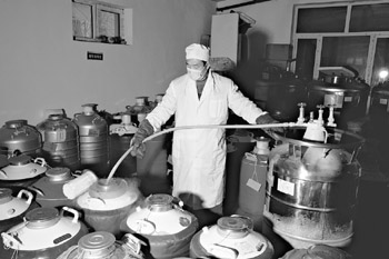 天山生物多年從事種公牛凍精生產(chǎn),擁有一支技術(shù)精良、實(shí)踐經(jīng)驗(yàn)豐富的專業(yè)技術(shù)人員隊(duì)伍。公司凍精生產(chǎn)全部采用進(jìn)口設(shè)備,其中從德國(guó)引進(jìn)的米尼圖全套凍精生產(chǎn)線達(dá)到世界先進(jìn)水平,凍精檢測(cè)設(shè)備達(dá)到國(guó)內(nèi)領(lǐng)先水平。公司多次承擔(dān)國(guó)家和新疆自治區(qū)星火項(xiàng)目、重點(diǎn)科研及推廣項(xiàng)目并多次獲得獎(jiǎng)勵(lì)。