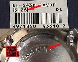 李先生再次仔細檢查了自己購買的這塊手表之后,又發現了一個奇怪的問題,這塊表外包裝盒上標注的機芯編號是5126,而手表背面標注的機芯編號卻是5118。這樣的情況再次加深了李先生對于從當當網購買的這塊卡西歐手表真偽的懷疑。