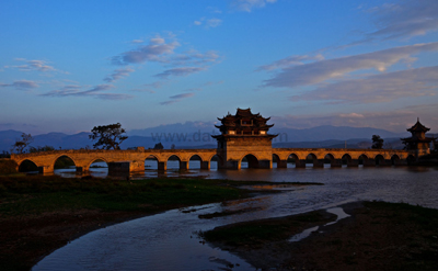 龍橋位于建水城西3公里的瀘江與塌沖河上,因兩河蜿蜒如龍,故而得名,俗稱“十七孔橋”,是一座三閣十七孔大石拱橋,是云南省規(guī)模最大、藝術(shù)價(jià)值最高的一座多孔連拱橋,已列入中國(guó)造橋史冊(cè)。1965年我國(guó)著名橋梁專家茅以升前來考察,將其列為全國(guó)大型古橋之一,遂被定為云南省重點(diǎn)文物保護(hù)單位。