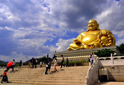 錦屏山風(fēng)景區(qū)坐落在彌勒縣城北風(fēng)景如畫的錦屏山上,位于昆河公路沿線,距彌勒縣城僅10公里,距省會(huì)昆明130公里,距石林風(fēng)景區(qū)40公里。彌勒素有南滇福地之稱,彌勒因寺而名重,寺因彌勒而名傳。錦屏山雖不高,但山形獨(dú)特,鐘靈毓秀,氣勢(shì)磅礴,粗看像一道巨大的屏風(fēng),呵護(hù)著美麗富饒的峨山甸水;細(xì)看則像一尊景白天成的彌勒佛,結(jié)迦趺坐,護(hù)佑眾生。