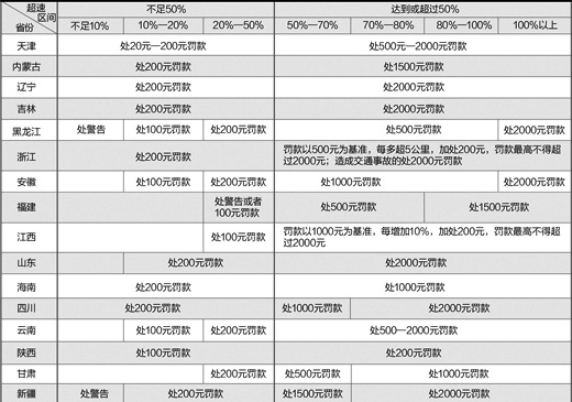 部分省份對高速公路超速的罰款規定。數據整理:郝迎燦