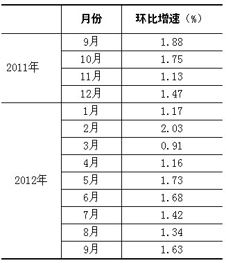 根據季節調整模型自動修正程序,對2011年9月份以來的固定資產投資(不含農戶)環比增速進行修訂。修訂結果及9月份環比數據如下: