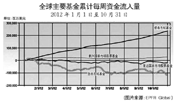 EPFR2日發布的最新一期報告顯示,在10月的最后一周內,全球資金流入債券市場基金額創下7周新低,僅有50億美元,流入股票市場基金額也僅為28億美元。由于對歐債危機和美國經濟形勢擔憂,全球資金參與市場的活躍度仍在下降。