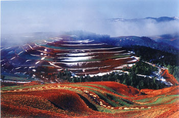 來到東川,不得不說的就是紅土地了。隱藏在深山中的紅土地能被世人發現,并不是偶然的。薈萃了云南紅土高原最迷人的色彩、線條和光影的紅土地,其優美的自然風光、純樸的風土人情,給人們帶來了強烈的視覺沖擊和心靈震撼,她的美麗成就了聞名中外的攝影天堂,她的寧靜、恬淡,也成了文人墨客抒懷的圣地。