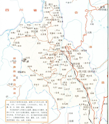 東川是云南省昆明市所轄五區之一,東鄰會澤,南接尋甸,西連祿勸,北與四川省會東縣隔金沙江相望。區委區政府所在地銅都街道,海拔1280米,城區面積9平方公里,距昆明市區140公里,距四川西昌市316公里。