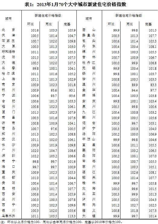 (二)與去年同月相比,70個(gè)大中城市中,價(jià)格下降的城市有16個(gè),持平的城市有1個(gè),上漲的城市有53個(gè)。1月份,同比價(jià)格上漲的城市中,漲幅均未超過4.7%,漲幅比去年12月份回落的城市有1個(gè)。
