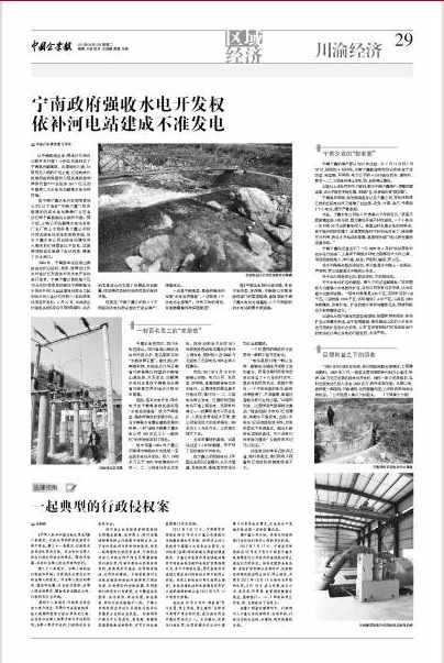 圖為《中國企業報》2013年5月21日對四川寧南縣政府強收水電開發權的報道的電子版截圖。