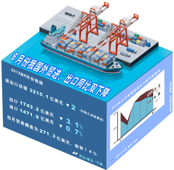 10日公布的進出口數據雙雙負增長進一步增加了市場的悲觀預期。6月出口額同比下降3.1%,環比下降4.6%;進口額同比下降0.7%,環比下降9.3%,遠低于市場預期。