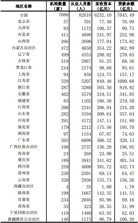 上半年小額貸款公司貸款余額7043億 新增貸款1121億