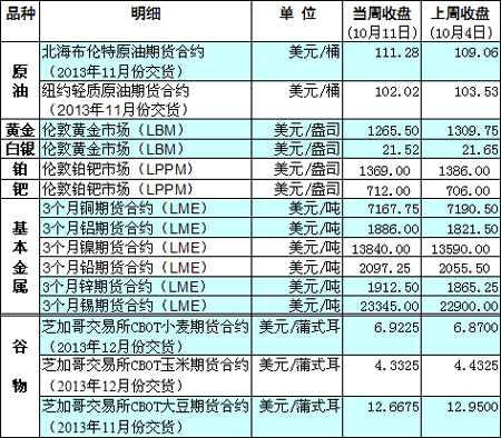 國際大宗商品期貨價格明細表[2013-10-14]