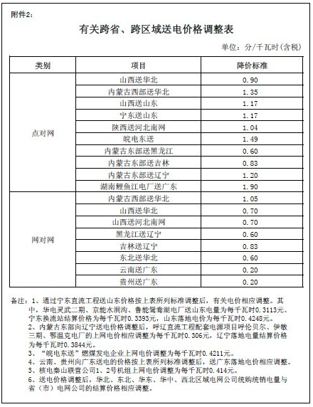 二、適當降低跨省、跨區域送電價格標準,具體降價標準見附件2。