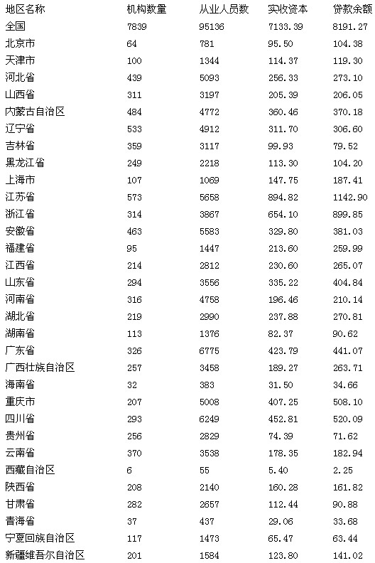 2014年1月26日,央行發布《2013年小額貸款公司數據統計報告》,統計顯示截至2013年末,全國共有小額貸款公司7839家,貸款余額8191億元,全年新增貸款2268億元。