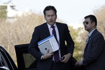 歐元集團(tuán)主席戴塞爾布盧姆(左)4月1日在雅典表示,希臘將在4月底之前獲得金額為63億歐元的新一輪救助資金。 正在雅典出席歐元區(qū)財(cái)長(zhǎng)非正式會(huì)議的戴塞爾布盧姆稱(chēng),這筆救助資金將幫助希臘應(yīng)付即將于5月到期的國(guó)家債務(wù)。另外兩筆總額大約10億歐元的救助資金可能在6月和7月進(jìn)行發(fā)放,但是否按時(shí)執(zhí)行要依希臘進(jìn)行的改革進(jìn)程而定。