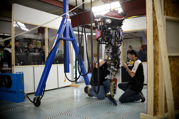當地時間2013年12月,美國克里斯琴斯堡,當地大學生正在為DARPA機器人挑戰賽做準備。據悉,該賽事是機器人領域的一項重大賽事,由DARPA(國防高等研究計劃署)舉辦。 |
