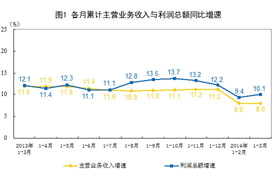 1-3月份,全國規模以上工業企業實現利潤總額12942.4億元,同比增長10.1%,增速比1-2月份提高0.7個百分點;實現主營活動利潤12238.5億元,同比增長9.4%,增速比1-2月份提高1個百分點。