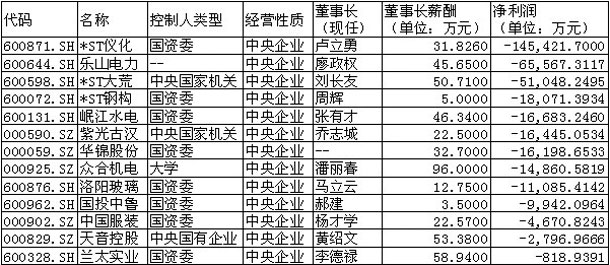 此外,從企業盈利角度看,有13家企業的董事長在企業處于虧損狀態下依然領有薪酬。如眾合機電去年虧損1.48億,其董事長年薪為96萬元,其年薪在虧損央企中拔得頭籌。
