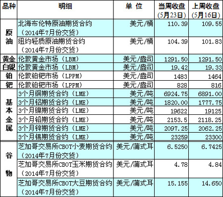 國際大宗商品期貨價格明細表[2014-5-19]