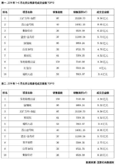 與之對應的則是5萬元/平方米以上的高端居住物業的下滑。亞豪機構副總經理高珊表示,上半年北京公寓豪宅產品共成交897套,與去年同期相比大幅下降57%;成交面積為15.9萬平方米,同比回落59%;銷售金額總計為92億元,同比減少105億元。