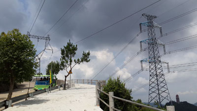 南方電網高壓線架設于觀音山上山必經之路之上,距離之近幾近伸手可觸,黃淦波說,因為這組高壓線,一到陰雨天就沒人敢上山了。記者 張彬 攝