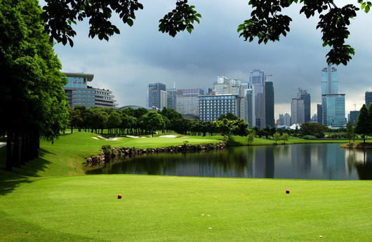 深圳市規劃和國土資源委員會的信息稱,目前深圳建成以及在建高爾夫球場共有15個,總占地面積約2400公頃,而截至2010年,深圳建成的社區公園共有524個,總面積約1000公頃。高爾夫球場總面積是社區公園總面積的2.4倍左右。然而記者查閱深圳規土委公布的“城市綠地分類與標準”發現,“高爾夫球場綠地”也在城市綠地之列。這意味著盡管深圳綠化率較高,但真正供市民直接使用的面積卻被高爾夫球場“吞噬”了。圖為深圳市中心的某高爾夫球場。