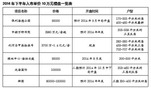 機構統計,2014年北京預計有7個頂級豪宅項目入市,數量創下北京近年之最。從價格來看,保利海德公園、北河沿甲柒拾柒號、廣渠金茂府、中赫萬柳書院等均價都在10萬左右;從分布區域來看,入市項目絕大多數都位處城市核心區域。其中,樣板間已經開放,預計9月中旬開盤的保利海德公園位處北三環薊門橋北;預計今年年底入市的中赫萬柳書院位于西北四環;自今年5月以來一直處于順銷狀態的萬科北河沿甲柒拾柒號則位處地安門。