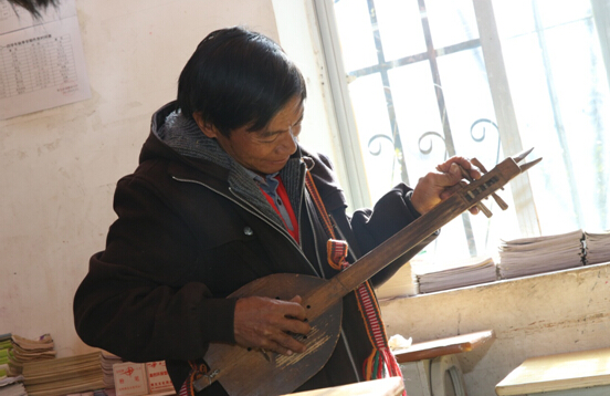 “我是想告訴孩子們讓他們要學(xué)會堅強,現(xiàn)在他們大多都是心里高興時彈一彈,但將來他們就知道了,以后的生活中會有很多的痛苦和不容易,那時她們彈起四弦琴會有一些不同的感受”,和盛偉坐在椅子上,粗糙的手里夾著剛點燃的香煙,看著在屋里嬉笑的孩子們?nèi)粲兴嫉卣f。