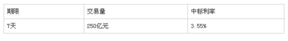 中國(guó)央行公開(kāi)市場(chǎng)今日將進(jìn)行250億元7天期逆回購(gòu)操作。公開(kāi)市場(chǎng)本周共計(jì)有450億元逆回購(gòu)到期,全周無(wú)正回購(gòu)和央票到期。