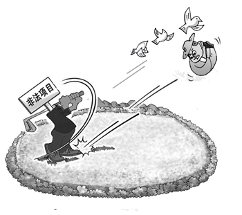 在球場違規建設并存續的同時,海涂林場的一些職工一直在為取締違規高爾夫球場而奔忙。職工們多次反映后也曾引起過重視,國土資源部等部門曾于2008年5月11日對悅達高爾夫的發球臺、球道及果嶺進行了強制拆毀并恢復原貌為公園,可惜一年后又被重新恢復為高爾夫球場。射陽縣體育局一份公開文件則顯示,2008年5月12日局有關人員前往射陽島體育公園實地辦公,將縣政府采購的12套健身路徑和省體育局下撥的一套健身路徑一起送至射陽島生態體育公園并全部安裝到位。今年1月底,《經濟參考報》記者在射陽縣體育局副局長劉叢坤的陪同下走進悅達高爾夫發現,當年下撥的13套健身器材依稀可見殘存的少部分,但顯然已經很少人使用,多數淹沒在球道邊側和草坪中間。針對體育公園為什么不讓老百姓進入的問題,劉叢坤笑著表示:“體育公園主打項目是高爾夫,不還是體育類的嗎?”
