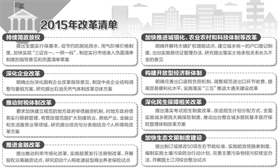 國務院18日批轉了國家發改委《2015年深化經濟體制改革重點工作意見》(簡稱《意見》)。在共計萬余字、涉及39項具體改革內容的《意見》全文中,提及改革的有170余處,提及“加快”的有32處。據《經濟參考報》記者統計,包括出租車行業改革、注冊制、巨災險在內的大量在議改革措施已確定年內落地。